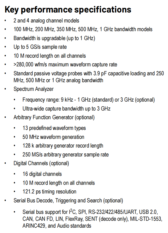 100 MHz - 1 GHz, 4 analog channels, 16 digital channels