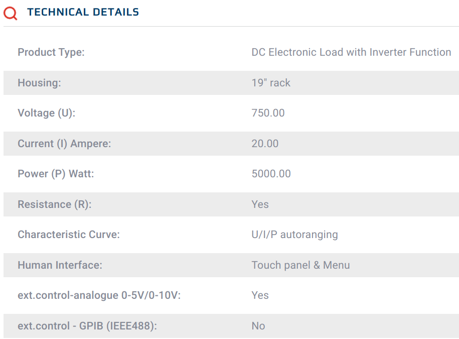 Electronic load 0...750 V/ 0...20 A, 5000W